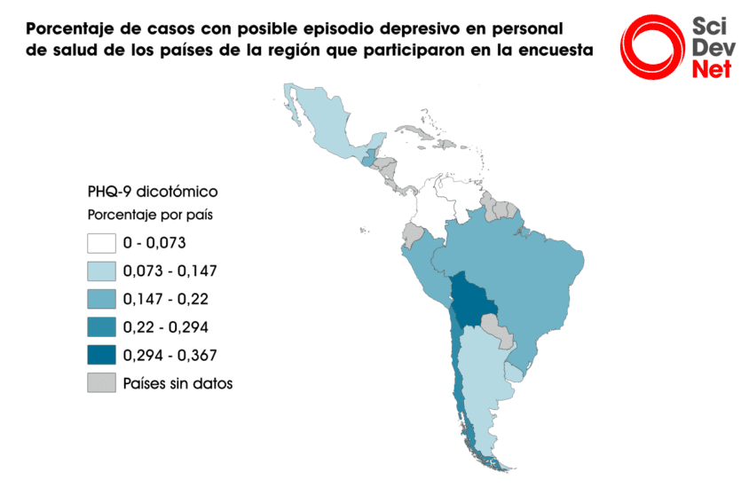 Por otro lado, el país que tiene más profesionales de la salud con síntomas de depresión es Chile, con 36,7 por ciento, y Venezuela el que tiene menos, con 13 por ciento.