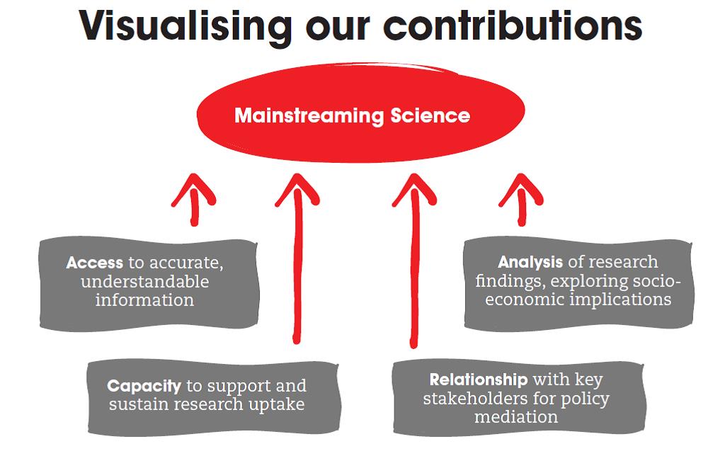 The purpose of our strategy for 2013–2017 is to encourage science and technological awareness in policies, programmes and projects that contribute to the wellbeing of the poor in the developing world. We hope to achieve this by facilitating access to information that is useful and trustworthy, as well as supporting the capacity to deliver and sustain this mainstreaming strategy.