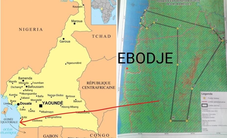 The location of the mine in the village Ebodjé, on the Atlantic coast of Cameroon.