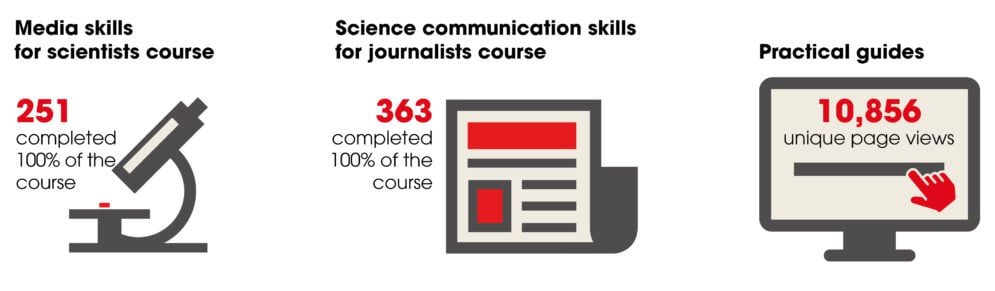 [1] A third course, Science Communication Skills for Press Officers, was launched in March 2020. This case study focuses on the first two courses. All facts and figures in this case study refer to Phase I of Script, which ran from March 2018 to December 2019.