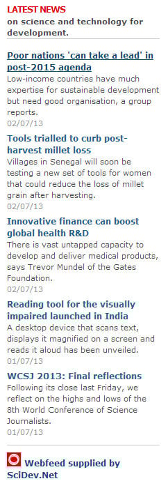 <img valign="bottom" src="scidev-webfeed.png"> Supplied by scidev.net