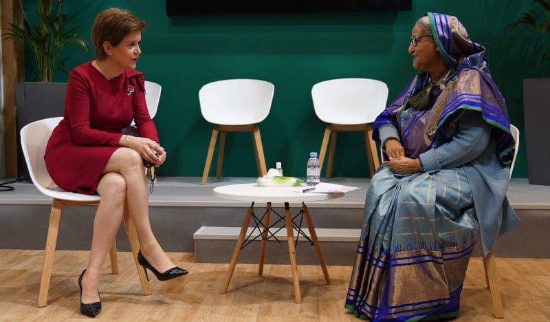 Scottish First Minister Nicola Sturgeon met with Bangladesh Prime Minister Sheikh Hasina following the Women’s Climate Leadership Event last week at COP26. Copyright: Scottish Government, (CC BY 2.0).
