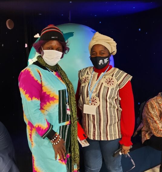 Journalists Christiana Winnie Saywah (left) and Siatta Scott Johnson (right) are experiencing the COP from within this year, attending as delegates for their country, Liberia. As members of the Female Journalists Association of Liberia, Saywah and Johnson are focused on gender.